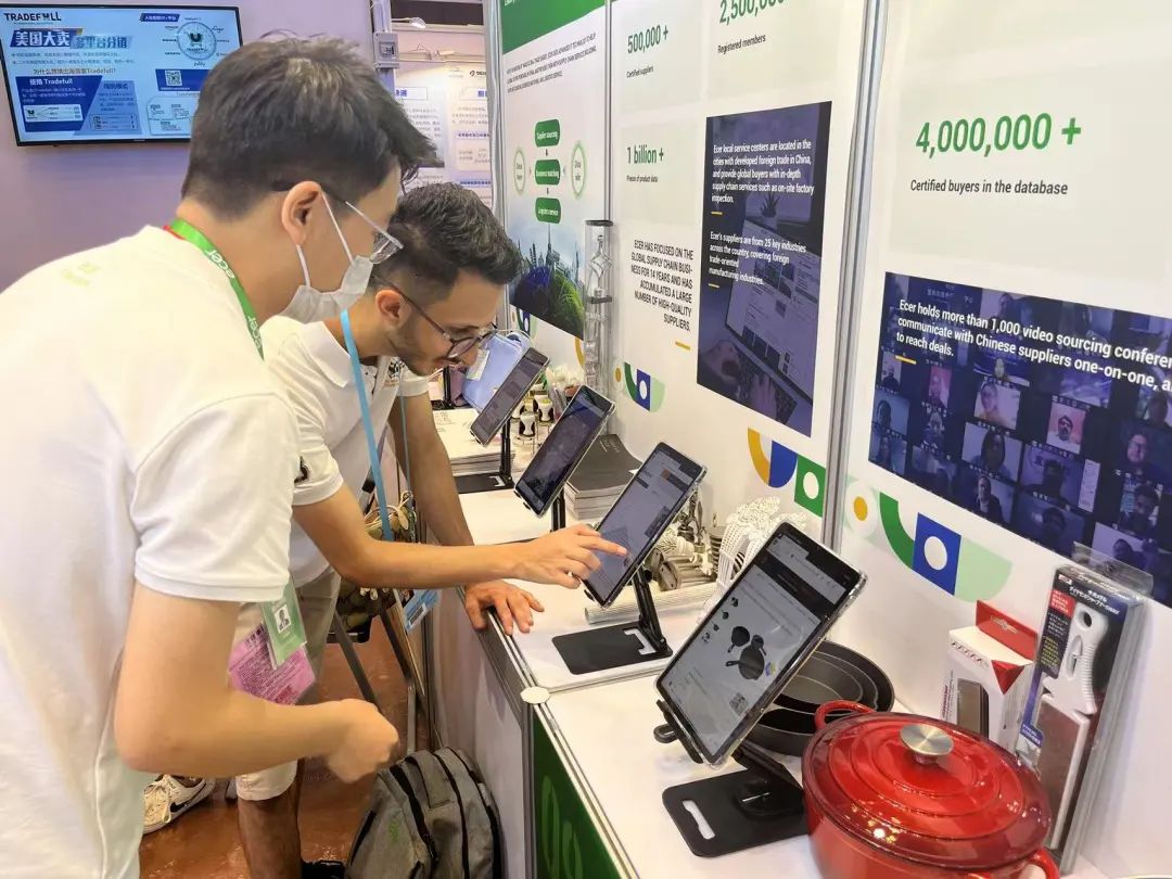 来自尼日利亚的充电宝采购商Paul来到宜选展位,与现场的供应商进行了充分的沟通,并通过宜选数字展会平台与线上供应商进行了视频交流。“你们的供应商质量非常高,而且沟通形式非常多样化,我们能从多个渠道获得优质供应商信息,这次很有可能达成多个合作。” Paul说。