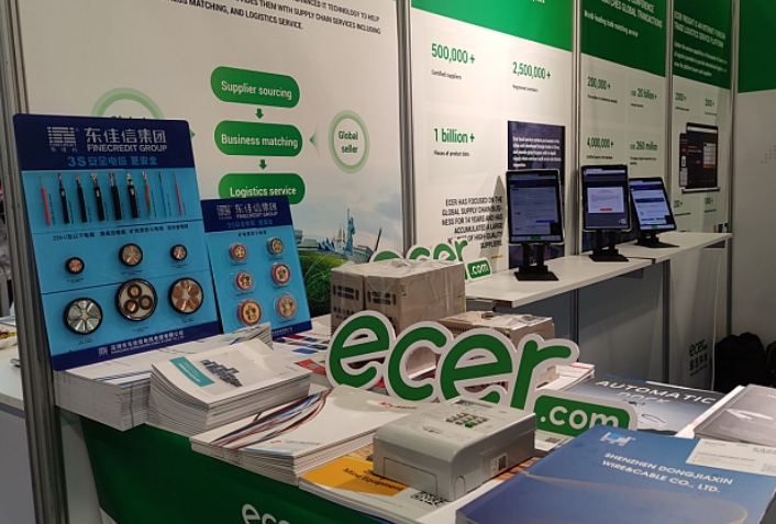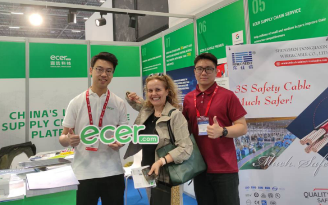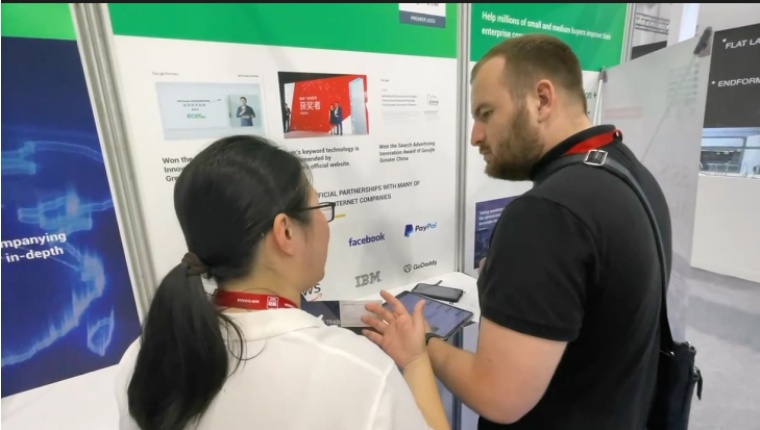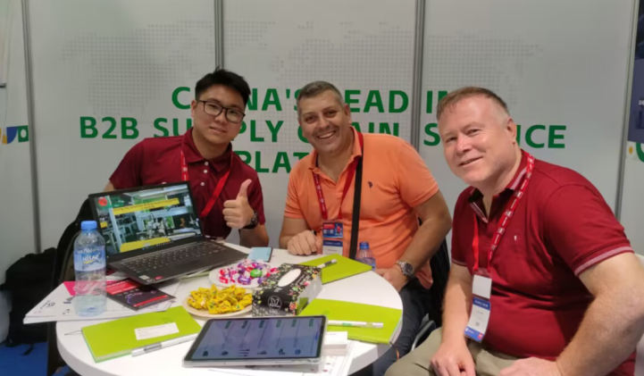 宜选科技展位现场吸引了许多海外采购商前来咨询业务、交流贸易心得,与国内供应商连线,宜选的服务获得了许多现场海外采购商的称赞。