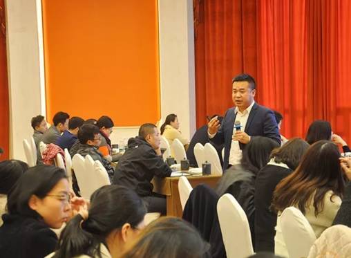 (宜选售前服务部经理何文为大家介绍营销新品)
