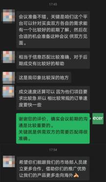 而通过此次在线外贸洽谈会,作为供应商一方的工程机械集团项目负责人也对宜选的服务做出了高度评价并表达了后续合作的强烈愿望。